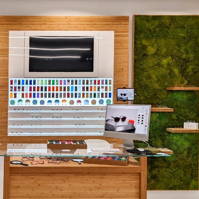 "Eye-catching" - Work with multiple customers at the same time, without ever leaving the station. A true playground for customers, where they have the ability to try on a variety of shapes, and look at the front colors & temples available.